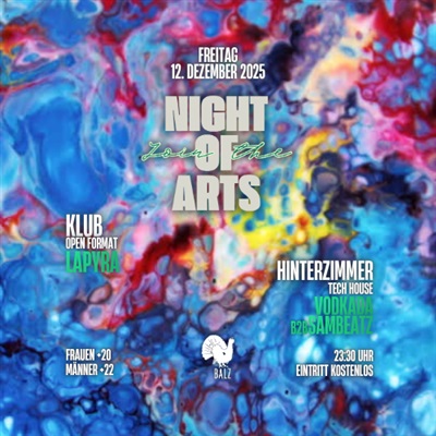 Night of the Arts verwandelt den Balz Klub in ein farbiges Chaos aus Musik, Kunstgefühl und Nachtenergie.