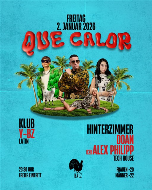 Am Freitag, 2. Januar 2026, verwandelt QUE CALOR den Balz Klub in eine tropische Sauna – nur mit besseren Drinks und deutlich mehr Hüftschwung.