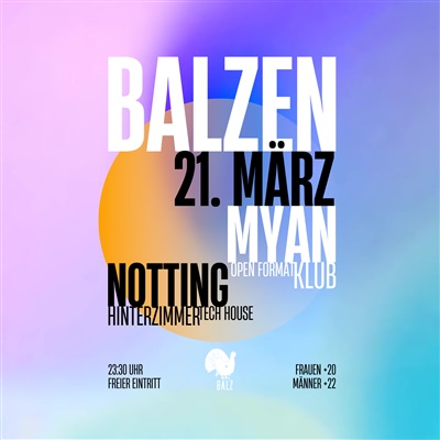 BALZEN am 21. März steht für genau diesen Vibe - entspannt starten, komplett eskalieren. Kein übertriebener Schnick Schnack, nur gute Musik und Menschen, die wissen, warum sie da sind.